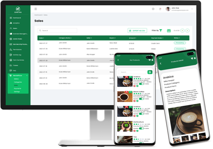 Dirigido al Productor, esta herramienta permite la gestión de los viveros de plántulas, el registro de las plantaciones, la visualización de cada lote de café vendido o entregado a la cooperativa, la visualización de informes de producción y la configuración de la información que se proporcionará sobre la propiedad en el proceso de trazabilidad.